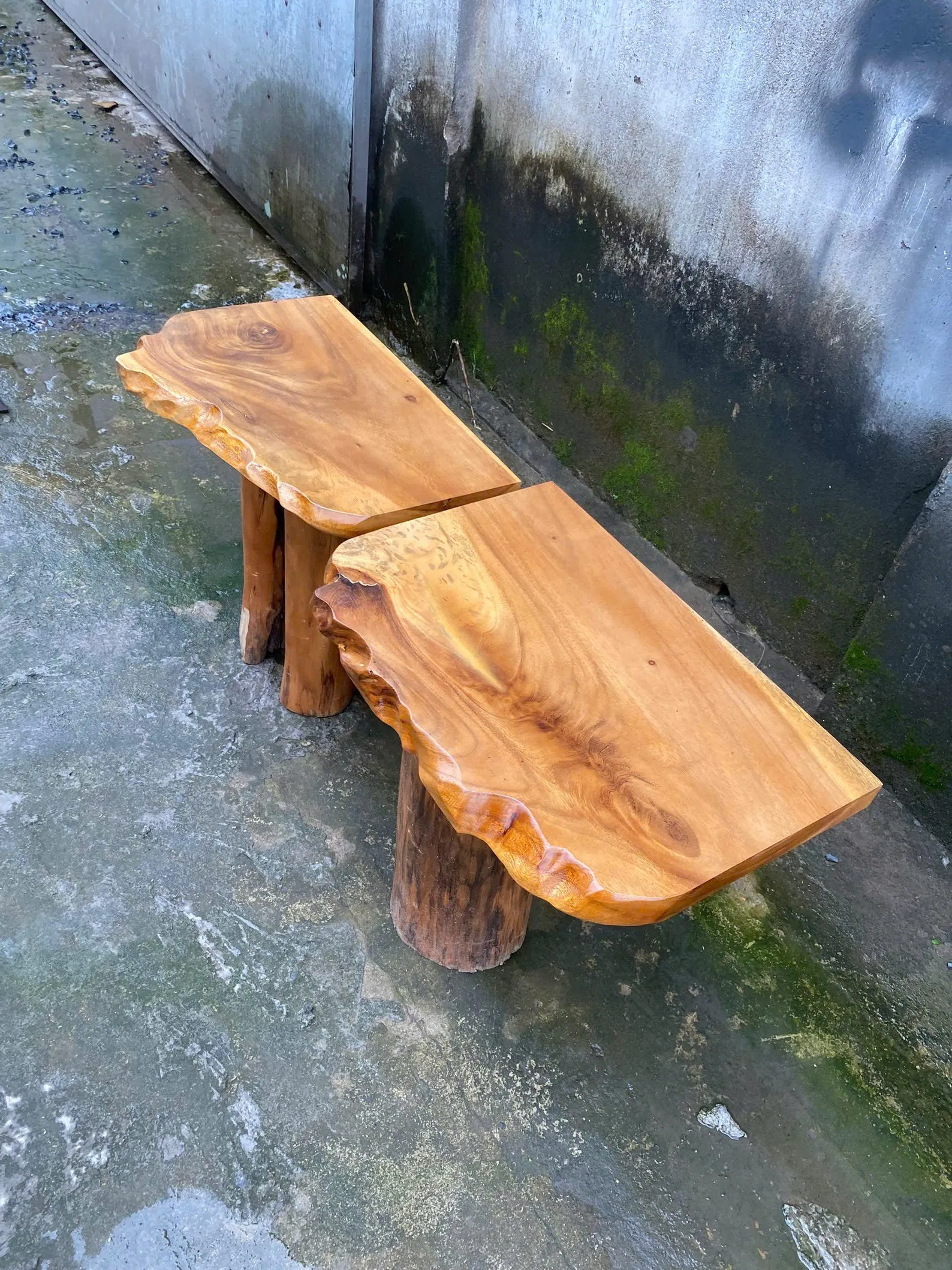 The silhouette pairs well with contemporary seating, slim metal lighting and simple textiles. It is also effective in smaller spaces, where the open base and slender legs help maintain a sense of airiness. The live edge detail adds interest from every angle, making the table suitable for central placement in a seating group.
